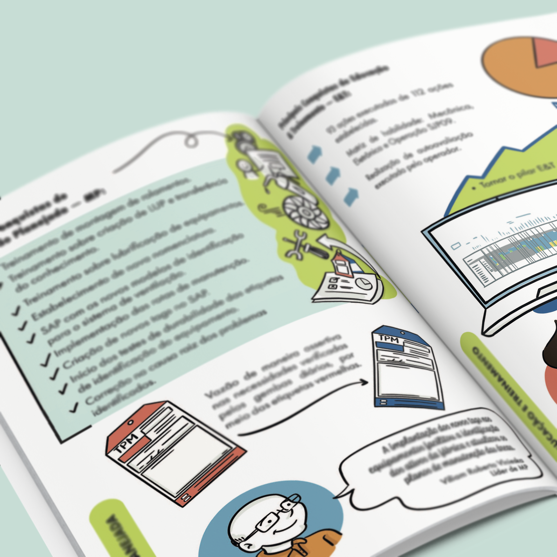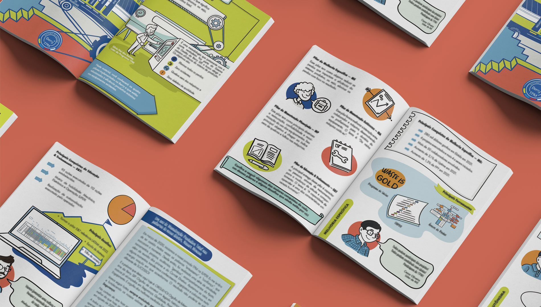 Illustrations realized for the Berry Global Company about the content of the magazine internal to the company. Characters created from real employees of the company to increase engagement with content and materials.