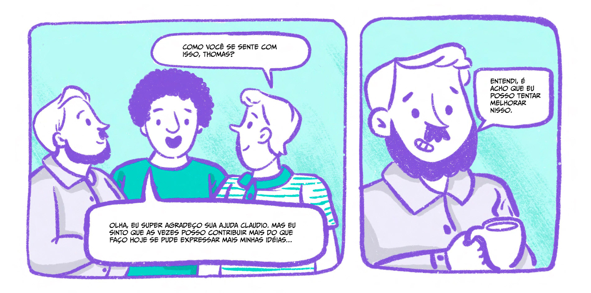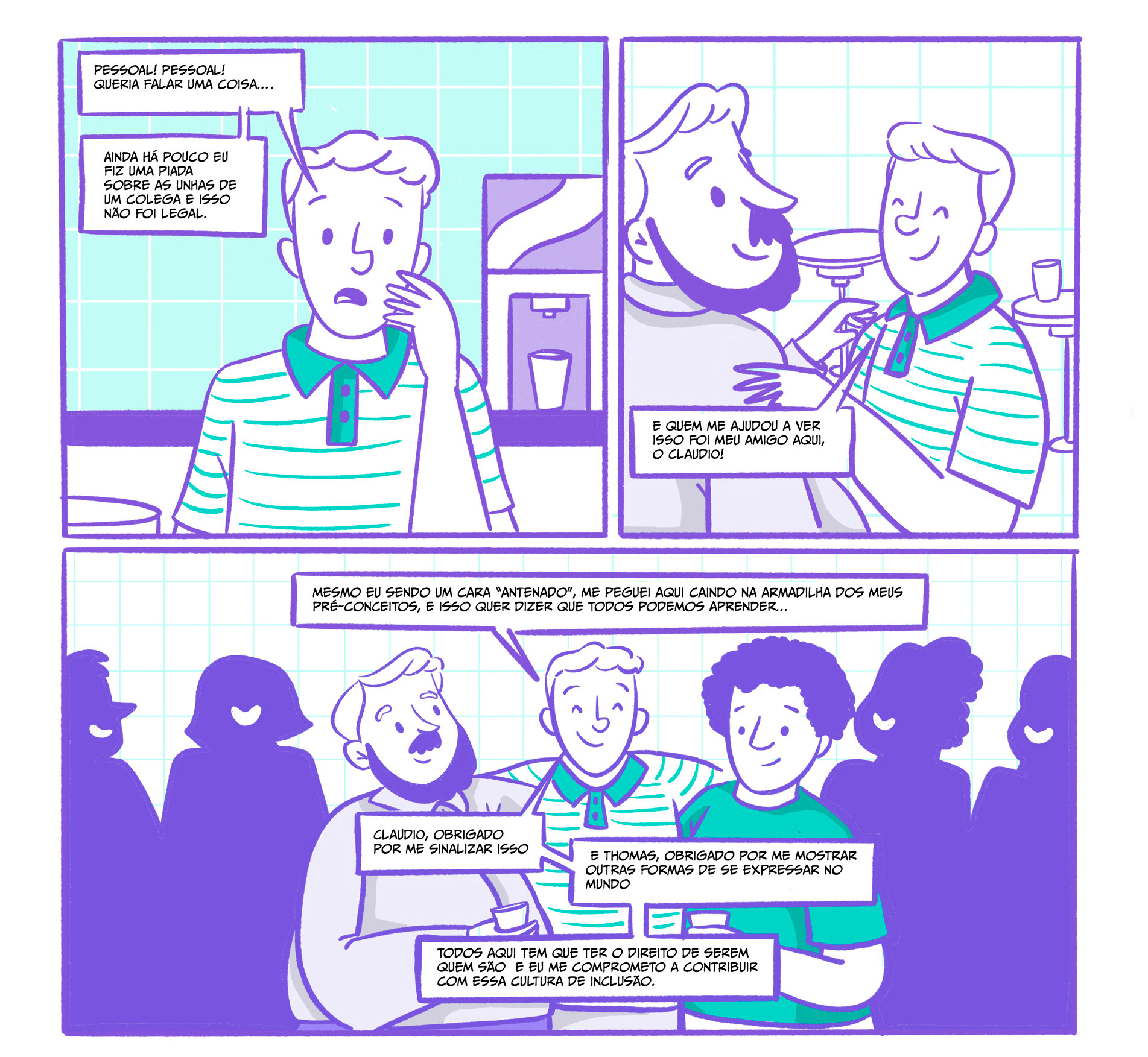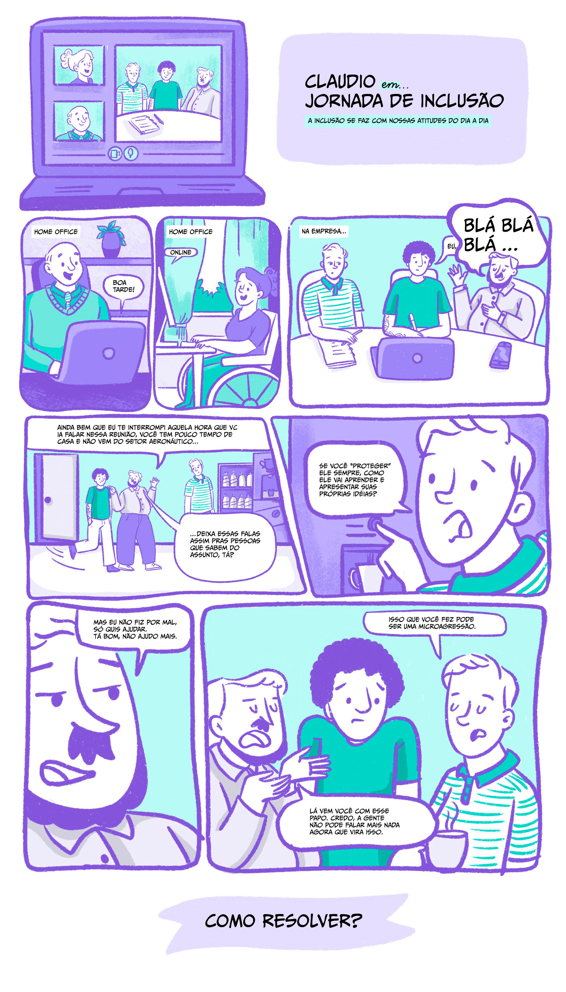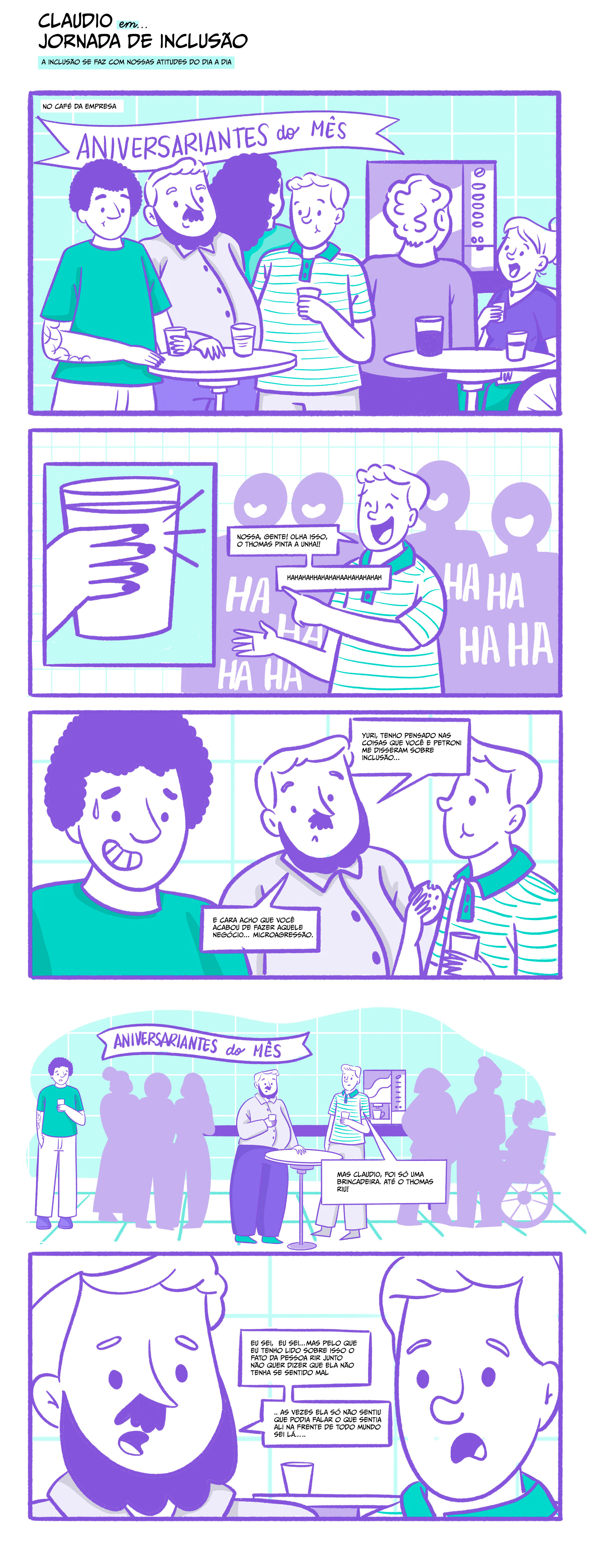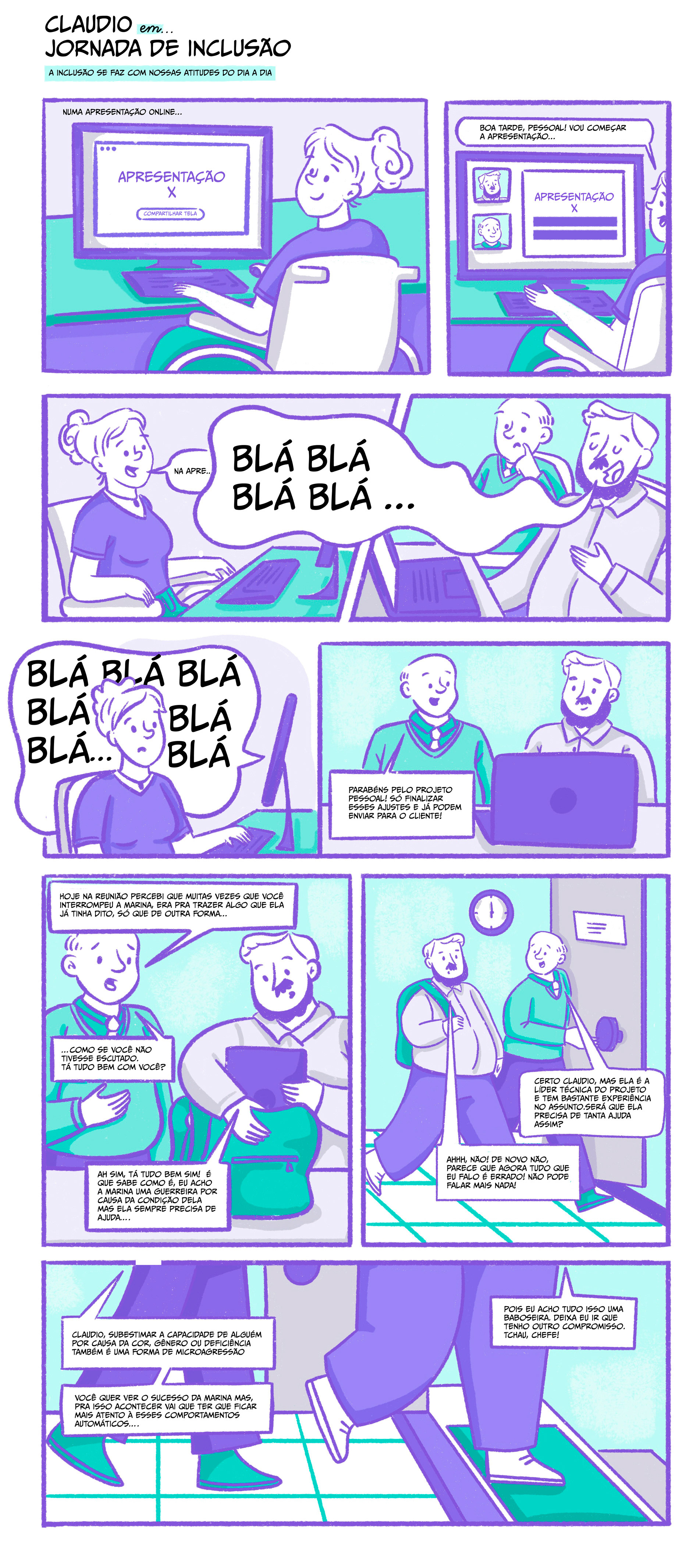 Criamos uma série de quadrinhos corporativos com histórias curtas baseadas em situações reais do dia a dia.